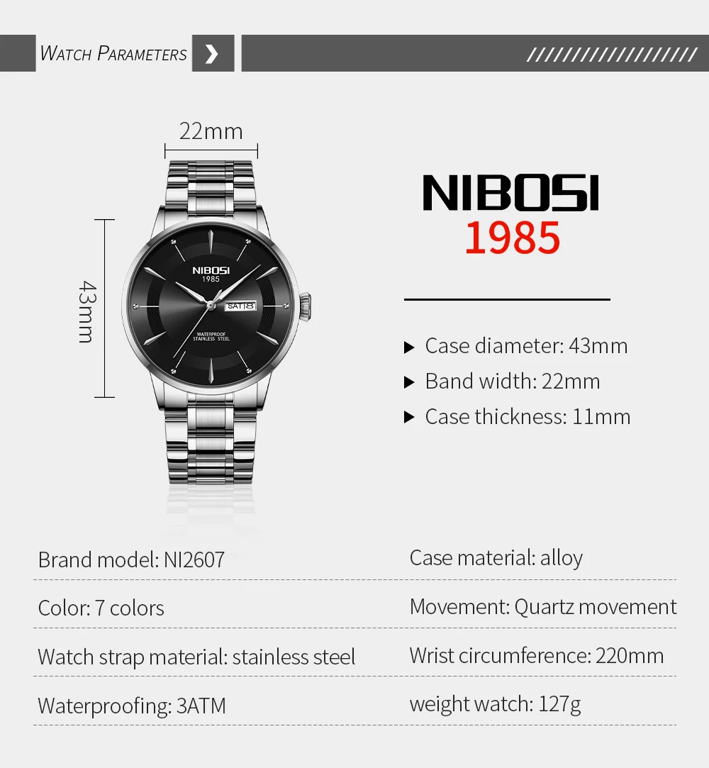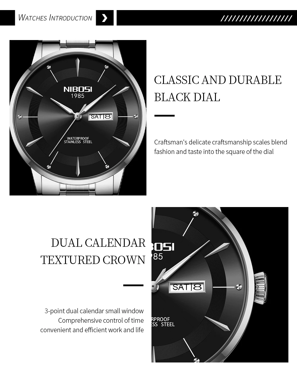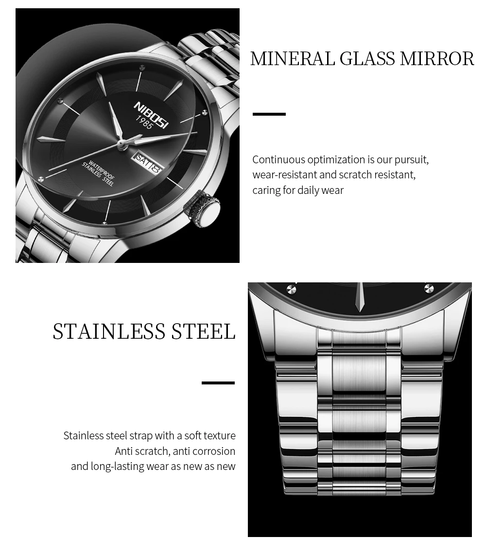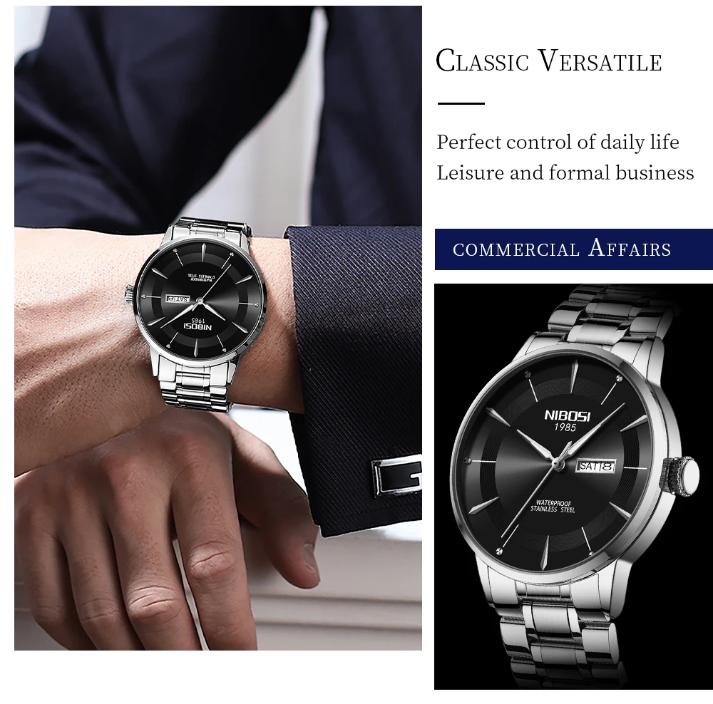 Overall, a men's stainless steel business watch is a versatile and practical accessory that can complement any wardrobe and help you keep track of time in style.Brand Name: NIBOSI